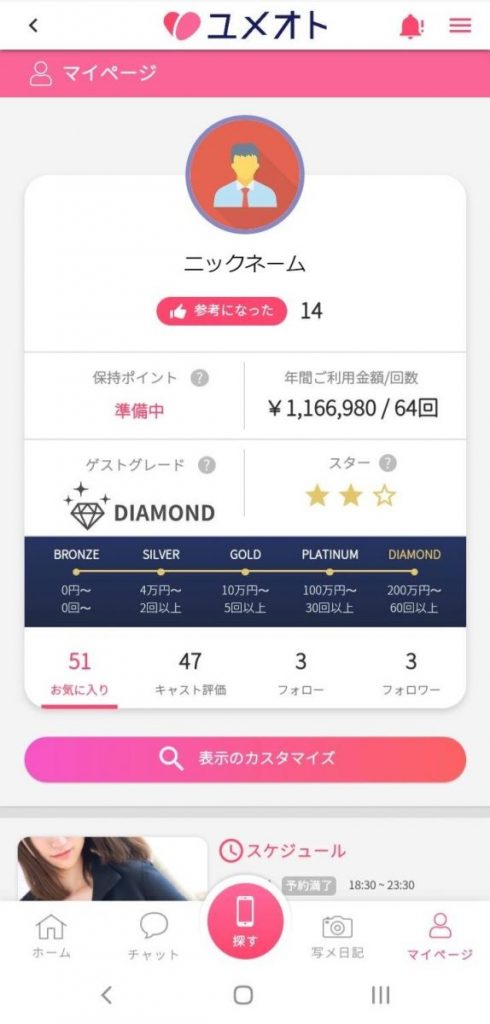 ユメオトではそんな女性の気持ちを尊重し、ゲストグレードの高いお客様より、スターの多いお客様にこそ優先的に予約を取ることができる優遇を付けるべきと考え、この制度が生まれました。